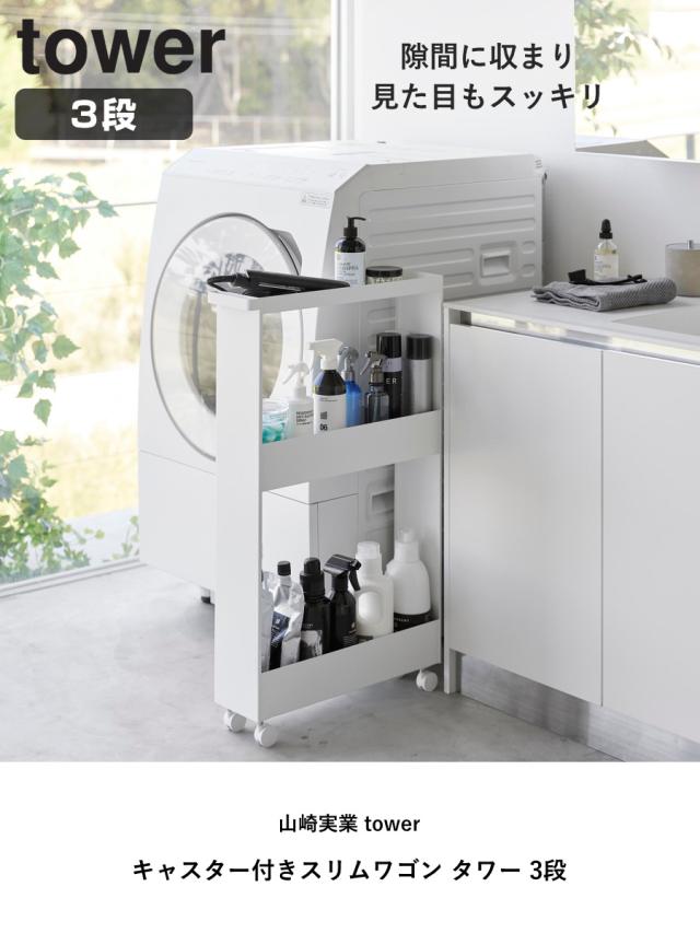 tower 山崎実業 キャスター付きスリムワゴン タワー 3段 ( 4903208018043 タワーシリーズ スリムワゴン ワゴン スリムサイズ 隙間 すき間 隙間収納 収納 キッチンラック キッチン収納 キッチン すきま収納)