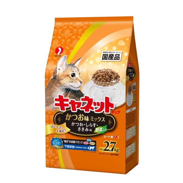 猫ドライフード 8046 ペットライン キャネットチップ かつお味ミックス かつお・しらす・ささみ味 野菜入り 2.7kg×5袋(13.5kg)