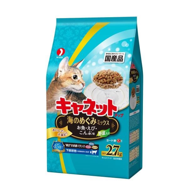 猫ドライフード 8053 ペットライン キャネットチップ 海のめぐみミックス お魚・えび・こんぶ味 野菜入り 2.7kg×5袋(13.5kg)