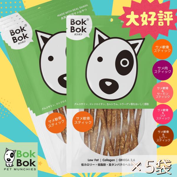 5袋まとめ買い 犬用 おやつ 天然 サプリメント BokBok ボクボク スティックタイプ 50g サメ肉 サメ軟骨 サーモン ツナ レバー