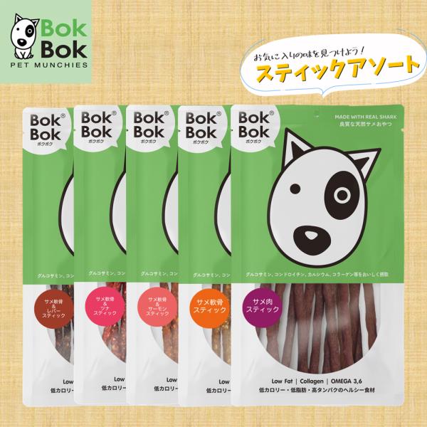 5袋お試しセット 犬用 おやつ BokBok ボクボク スティックアソート サメ軟骨 サメ肉 サーモン ツナ レバー セット 50g
