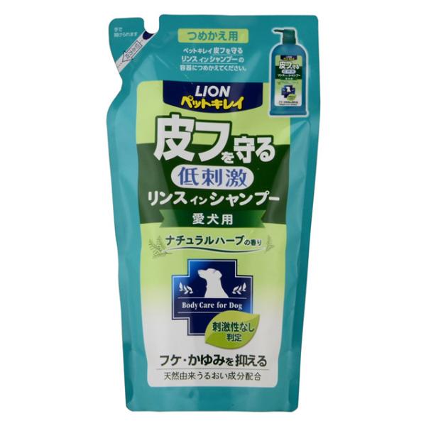 | ライオン ペットキレイ 皮フを守るリンスインシャンプー愛犬用 ナチュラルハーブの香り つめかえ用 400ml | |