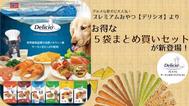 大人気!北欧のサーモンの風味がぎゅっと詰まったプレミアムおやつ【デリシオ】のお得なセットが登場!好きな味を見つけたら5袋セットで賢くまとめ買い!値段もちょっぴりお得なセットとなっています。