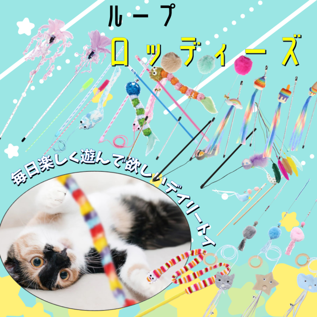 「ループ ロッディーズ」は、猫好きが考えた、猫と猫オーナーのための猫じゃらし系コミュニケーションおもちゃです。毎日楽しく遊んで欲しいデイリートイ・シリーズになっています。