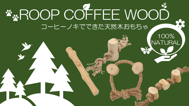 「カフェウッド」は、硬くて木片が出にくい「コーヒーノキ」を使用したおもちゃです。ワンちゃんの噛みたい!という要求に応えつつ、口腔ケアにも役立ちます。