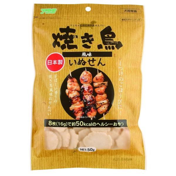 小麦を使わず馬鈴薯澱粉で作った人気のいぬせんシリーズ。芳ばしい焼き鳥の香りのヘルシーなおやつ。