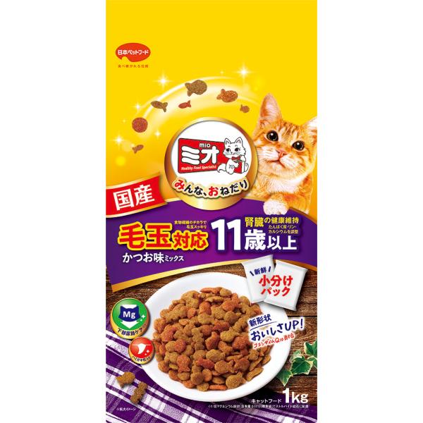 猫ドライフード 6470 日本ペットフード ミオ ドライミックス 毛玉対応 11歳以上 かつお味 1kg×10袋(10kg)