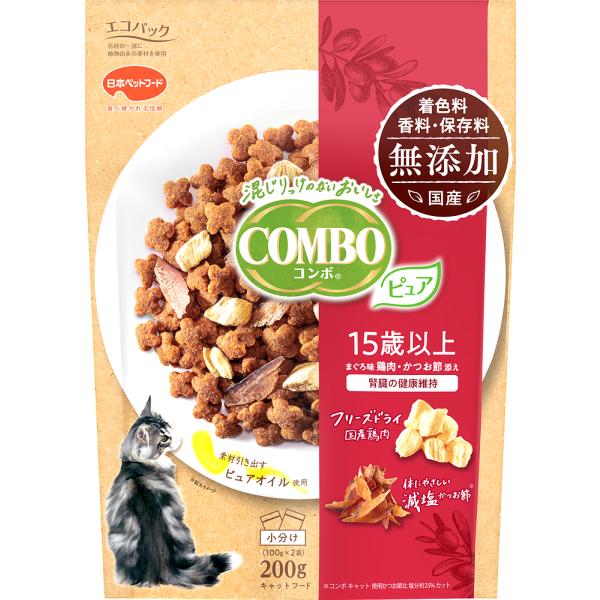猫ドライフード 6562 日本ペットフード コンボピュア キャット 15歳以上用 まぐろ味・鶏肉・かつお節添え 200g×12袋(2.4kg)