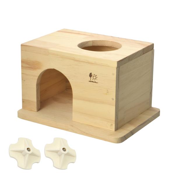 | 注意事項 | ・本品は小動物用木製ハウスです。ほかの目的には使用しないでください。 ・火気には近づけないでください。 ・状況によって危険を感じた場合は使用を注意してください。 ・自然木を使用しているので木目や木の色にバラつき、節目、継ぎ目などあります。 |