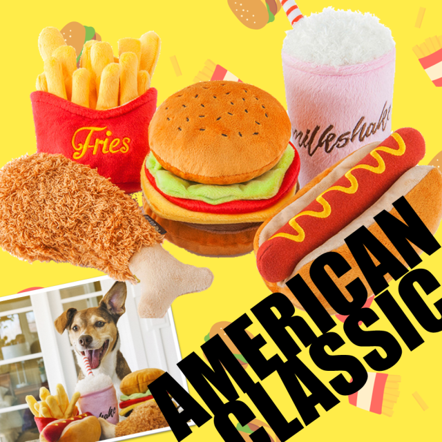 P.L.A.Y.(プレイ)の大人気プラッシュトイ・シリーズ「 American Classic(アメリカンクラシック)」のハンバーガーやシェイク、フライドチキンなら思いっきり齧りついても、カロリーやお口周りのベタベタを気にしなくて大丈夫!