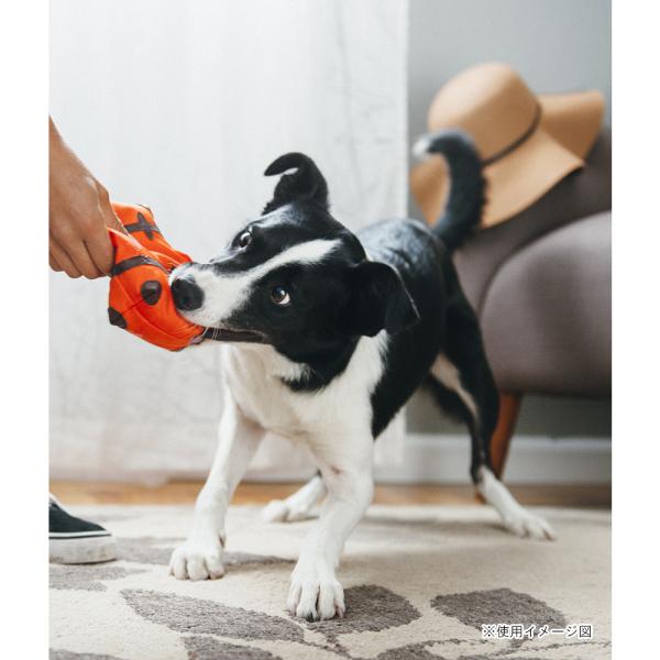 ベロア製で肌触りがよく、ワンちゃんの興味を惹きつける音も鳴ります。形や触り心地だけではなく、作り方にもこだわっており、子供用品と同等の品質基準で生産しています。少しでも丈夫な作りにするために、生地は2枚重ねにし、縫い目もダブルステッチ(2度縫い)を手作業でしています。
