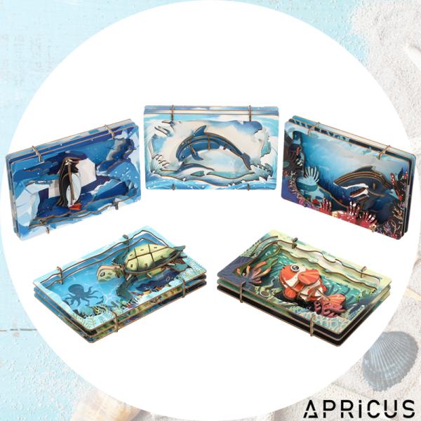 ルークラン APRICUS 3Dシアターパズル 海の生き物シリーズ パズル 9.7×14.7cm 木製 プレゼント 贈りもの 脳トレ インテリア