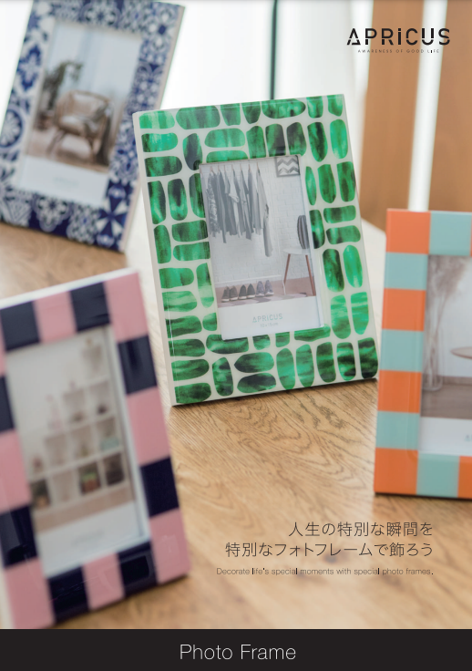 アプリクスのフォトフレームはさまざまなシーンや好みに対応できるよう豊富な柄を取り揃えました。人生の特別な瞬間をとらえた写真を特別なフォトフレームで飾りましょう。