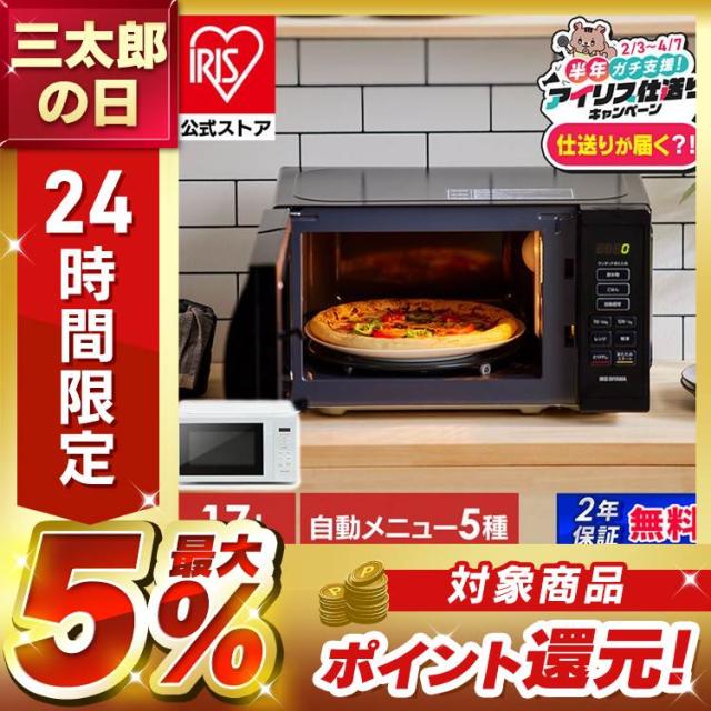 \2100円OFFクーポン!~3/15 9:59/【今なら仕送りが届く?!】 電子レンジ 本体 単機能 17L 650W 500W 200W ターン ターンテーブル アイリスオーヤマ ホワイト ブラック 白 黒 シンプル 一人暮らし ひとり暮らし 新生活 レンジ コンパクト おしゃれ 送料無料