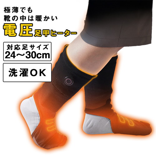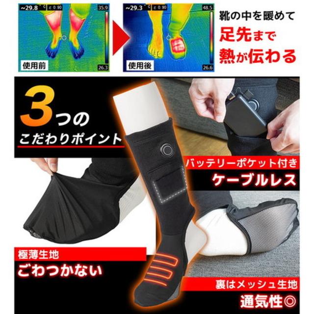 靴下の上に重ねて履けば、足の甲部分のヒーターが足を暖めてくれます。