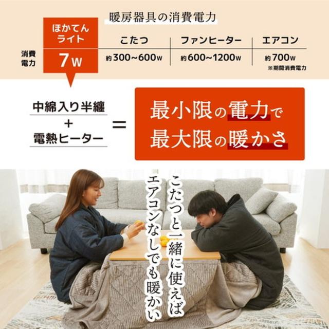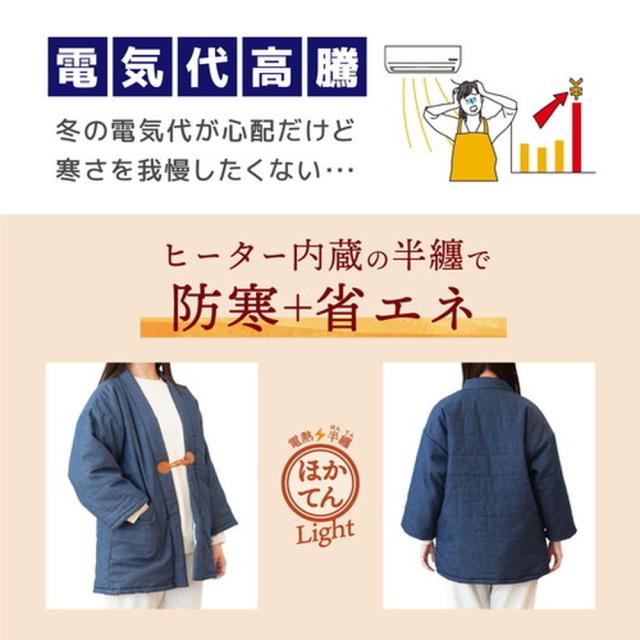 寒さにも電気代の高騰にも負けない、ヒーター入りの半纏が電熱半纏「ほかてん」ライトです。