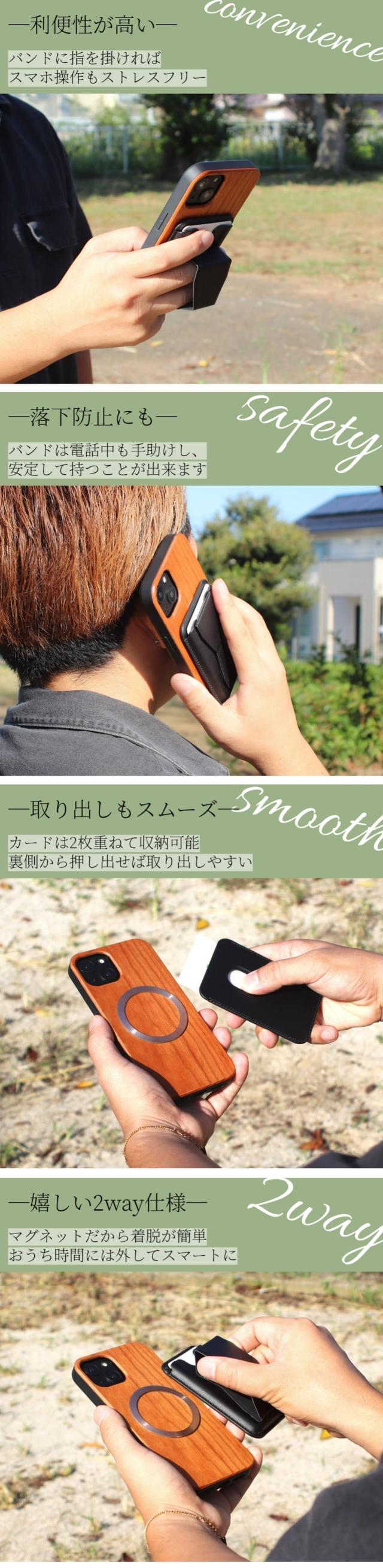 iphone ケース ウッド iphone17 iphone16 iphone15 iphone14 pro 13 12 マグセーフ対応 magsafe カード収納 マグネット アイフォン 17 16 15 14 13 se3 se2 天然木 スマホケース 背面収納 カード入れ 動画スタンド 木製 17pro air 16pro 13mini メンズ メタリック 送料無料