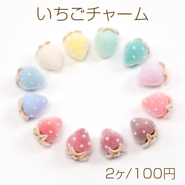 いちごチャーム フロッキー調 苺 イチゴチャーム ストロベリーチャーム 1カン付き 全12色 約12×16mm (2ヶ)