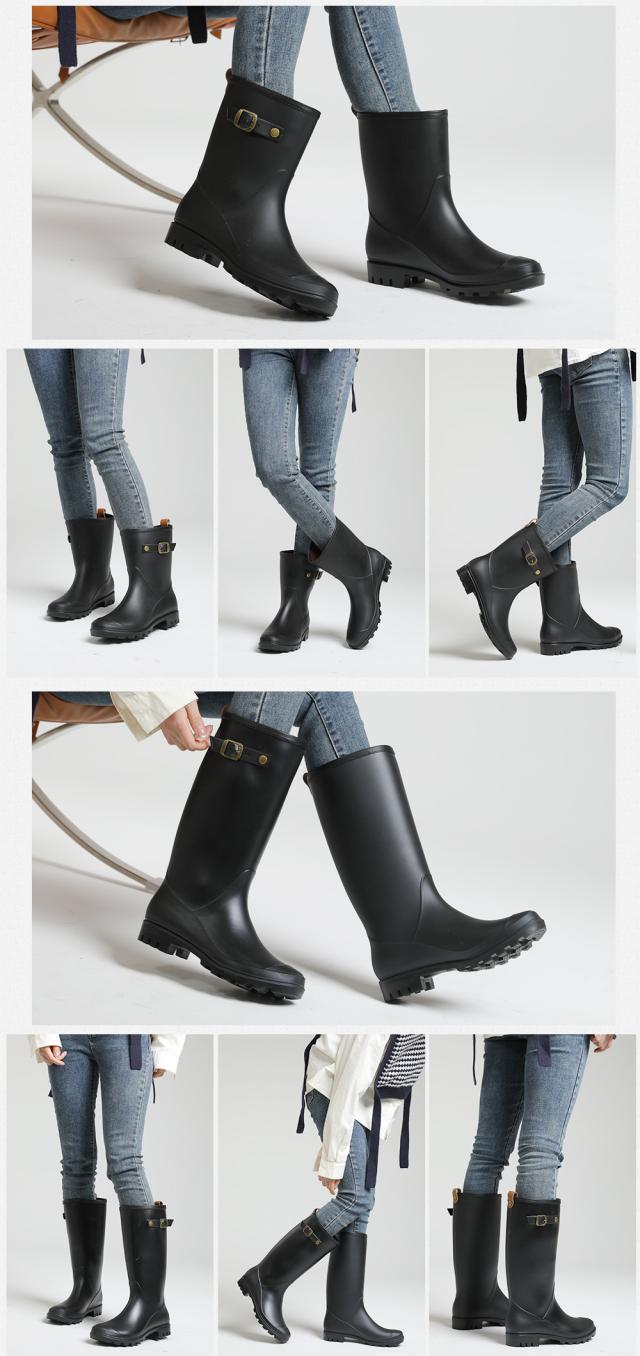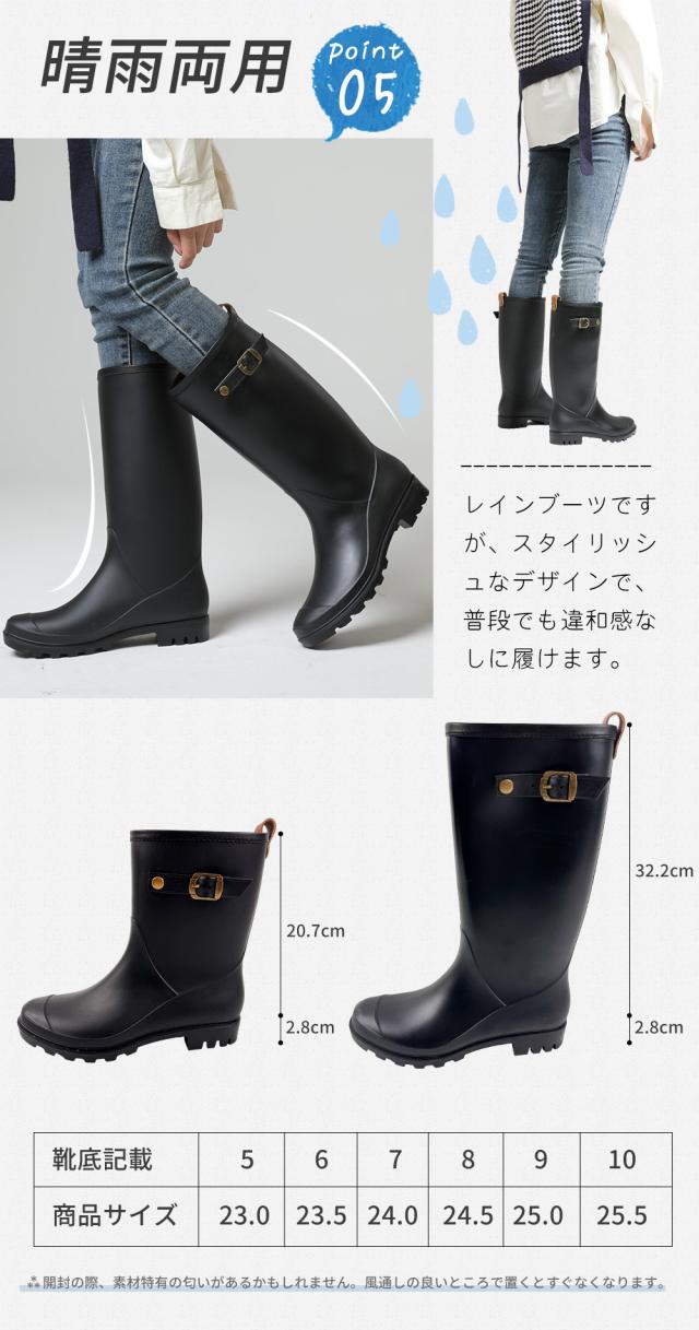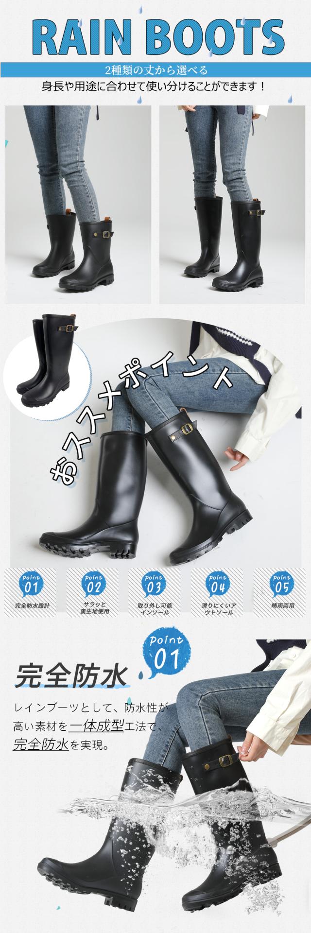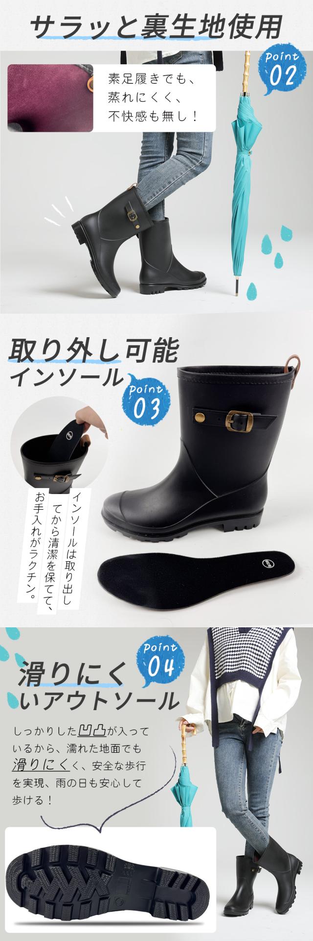 レインブーツ 長靴 レディース ミドルブーツ レインシューズ キャンプ アウトドア ガーデニング 農作業 釣り 園芸 作業 ブラック 23.0cm-25.5cm