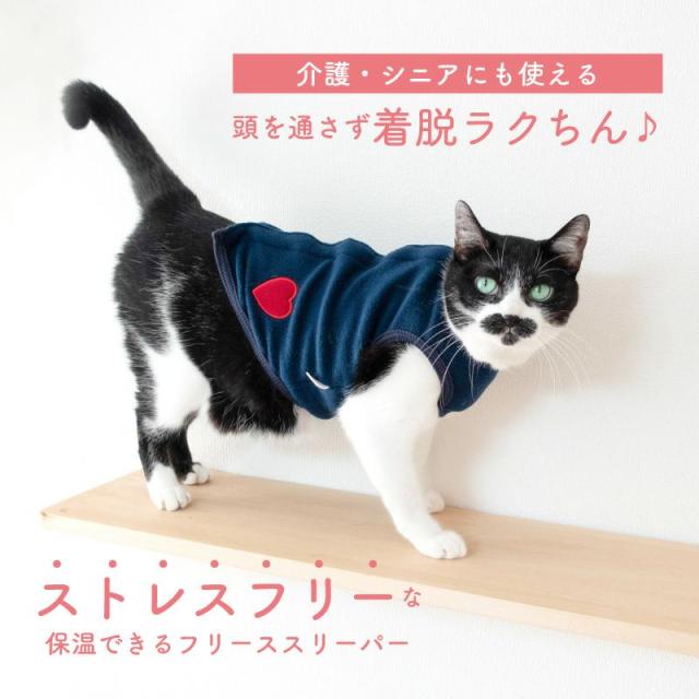 寒がりさんや 介護 のお供に 猫 服 過剰グルーミング 高齢 シニア 舐め壊し 冬 雪 スノー 秋 猫用 あったか ふわもこ フリース スリーパー ベスト 傷舐め対策 着脱簡単 アウター 防寒 寒さ対策 保温 暖かい 軽量 キャットウェア