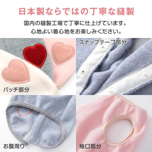 ハートパッチが映えるシンプルなデザインが魅力のフリーススリーパーは快適な着心地を保ちながら、寒い季節も暖かく可愛く過ごせるアイテムです。