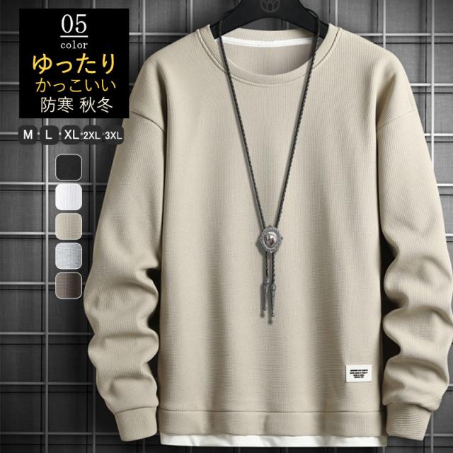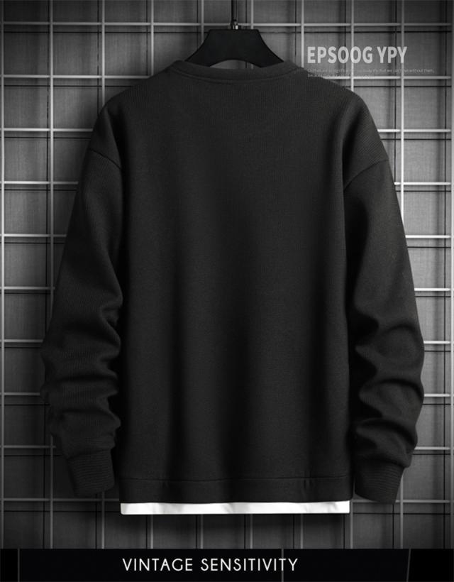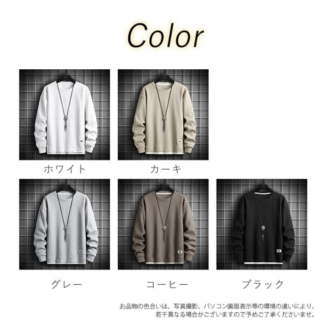 トレーナー メンズ スウェット クルーネック プルオーバー フェイクレイヤー Tシャツ ゆったり 大きいサイズ トップス インナー