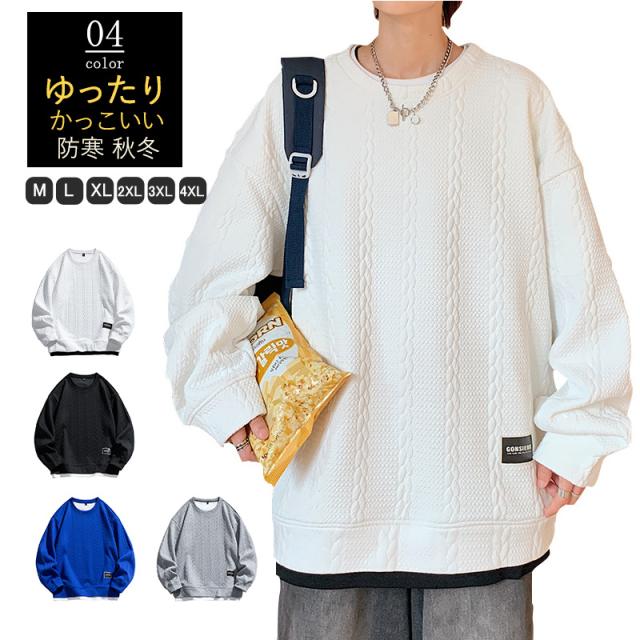トレーナー メンズ スウェット クルーネック プルオーバー ゆったり Tシャツ フェイクレイヤー 大きいサイズ トップス インナー