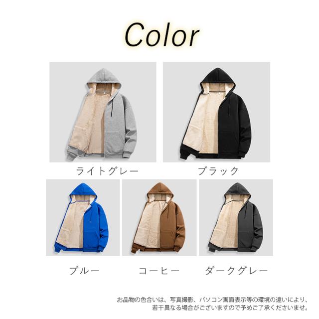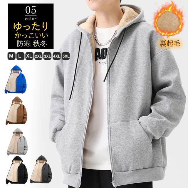 パーカー メンズ 裏起毛 ジップアップ 裏ボア フード付き スウェット 羽織り もこもこ アウター ゆったり 男女兼用 防寒 暖か