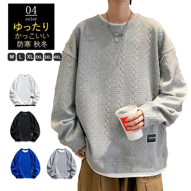 トレーナー メンズ スウェット クルーネック プルオーバー ゆったり Tシャツ フェイクレイヤー 大きいサイズ トップス インナー