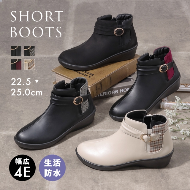 上品な配色とベルトデザインがお洒落なショートブーツ。