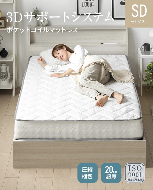 マットレス ポケットコイルマットレス ブラック セミダブル ポケットコイル 低反発マットレス 低反発 ベッドマットレス セミダブルマットレス 送料無料 厚さ20cm 新生活