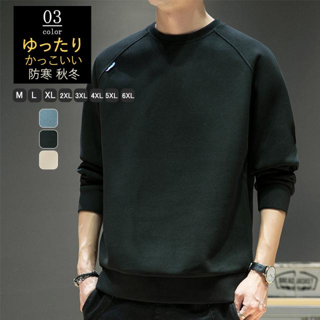 トレーナー メンズ スウェット クルーネック プルオーバー トップス ゆったり インナー 大きいサイズ 重ね着 上着 無地 防寒