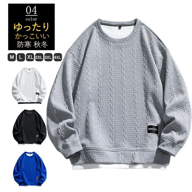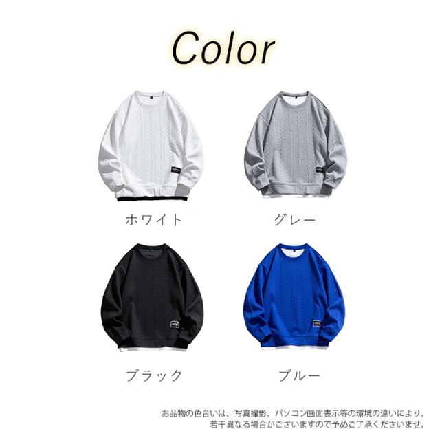 トレーナー メンズ スウェット クルーネック プルオーバー ゆったり Tシャツ フェイクレイヤー 大きいサイズ トップス インナー