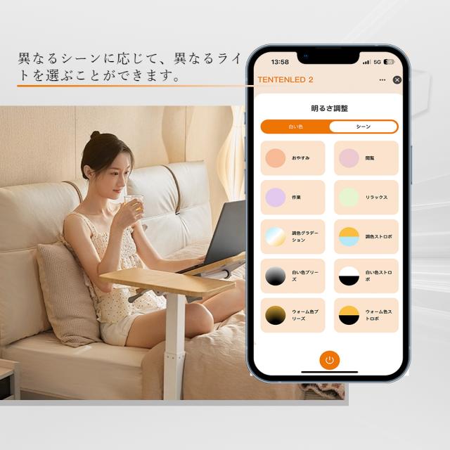 - シーンや雰囲気に合わせて、点灯モードを切り替えることができます。自分の好みに合わせて、簡単に理想の照明雰囲気を選ぶことができます。