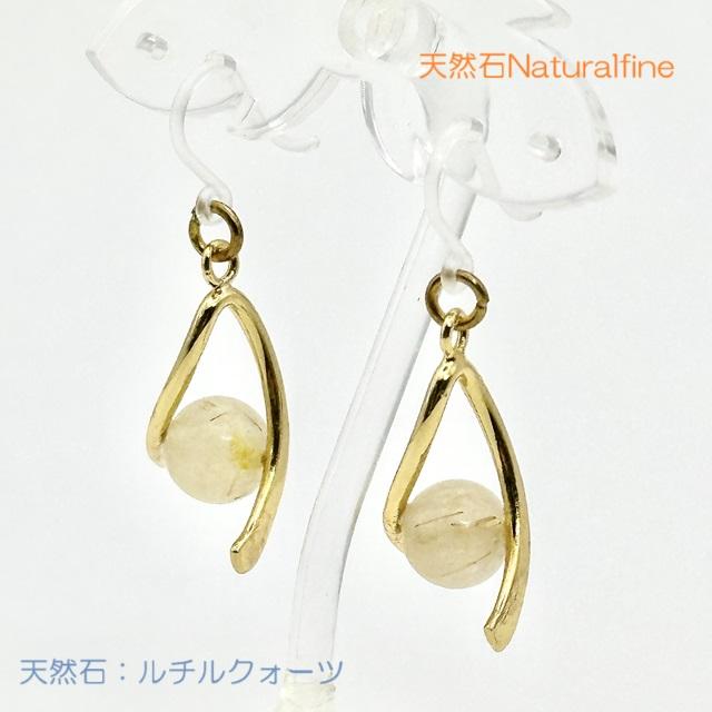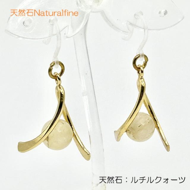 ピアス ルチルクォーツ 天然石 イヤリング アレルギー対応 樹脂金具 チタン 水晶 パワーストーン 金運