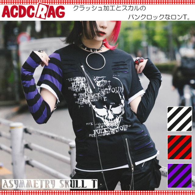 ACDC RAG エーシーディーシーラグ アシメロングTシャツ パンク ロック ファッション V系 原宿 原宿系 2way 半袖 長袖 Tシャツ ロンT ボーダー jr-258