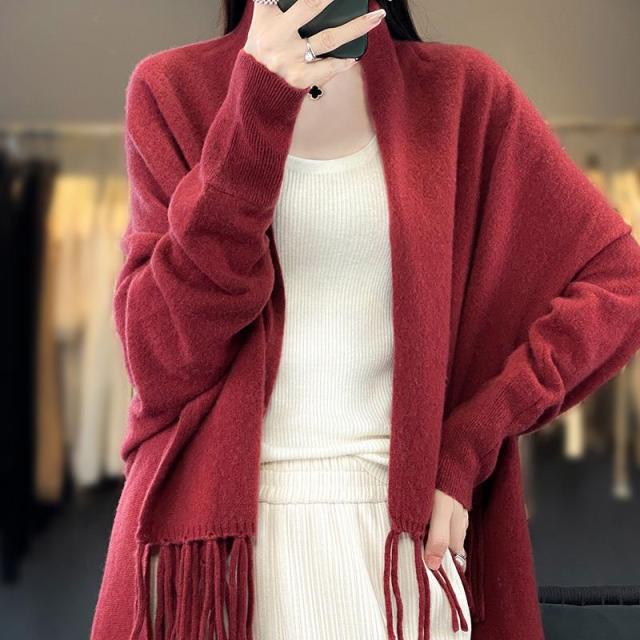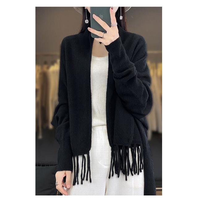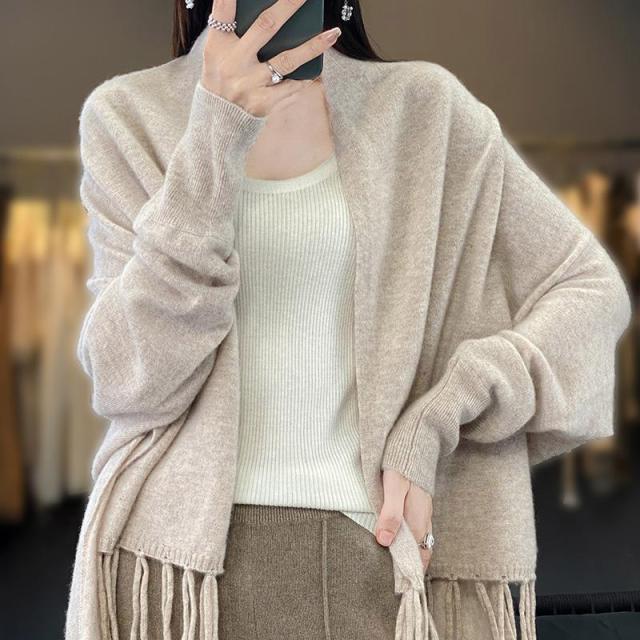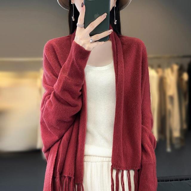 カーディガン レディース アウター 大判ストール 大判マフラー フリンジ ストール 無地 ショール ひざ掛け マフラー ニット ロング ストール風