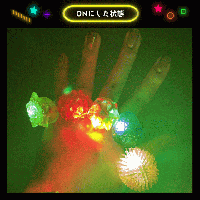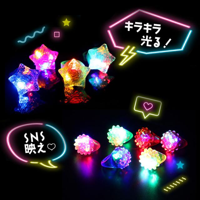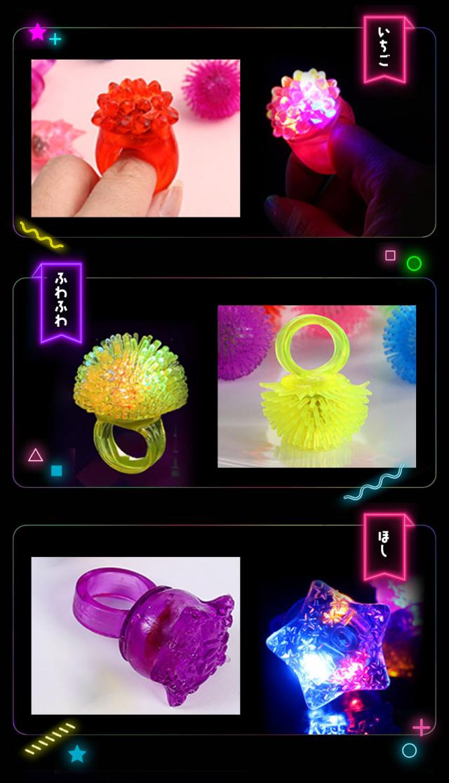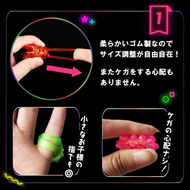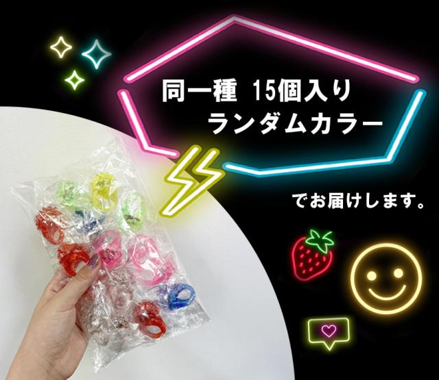 キラキラ光る!SNS映え☆イベントがさらに盛り上がること間違いなし!!キラキラ光るリング 15個入りpoint1【柔らかいゴム製】柔らかいゴム製なのでサイズ調整が自由自在!またケガをする心配もありません。