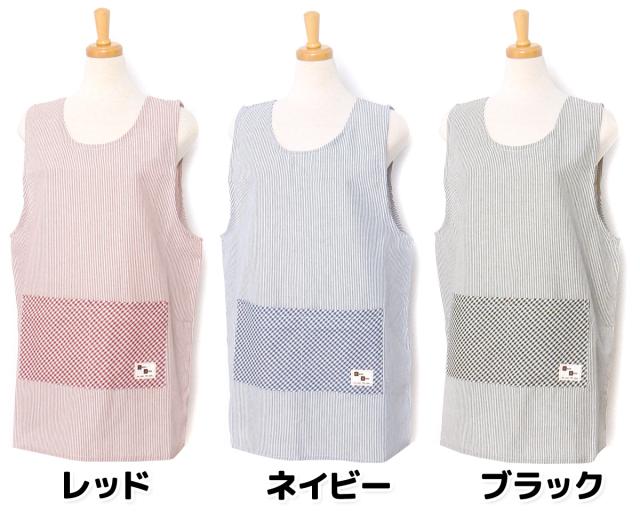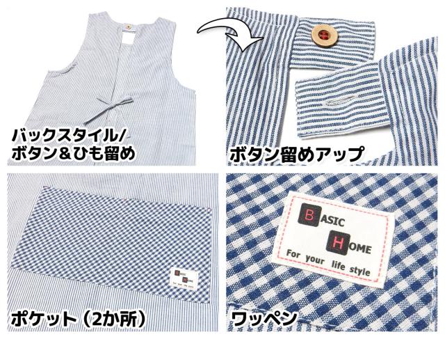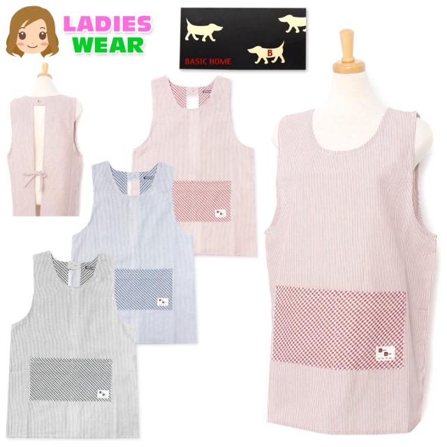 【送料無料】婦人 レディース ラン型 エプロン 後ろボタン&ひも留め ストライプ柄 ポケット付き sl-0510【メール便対応】