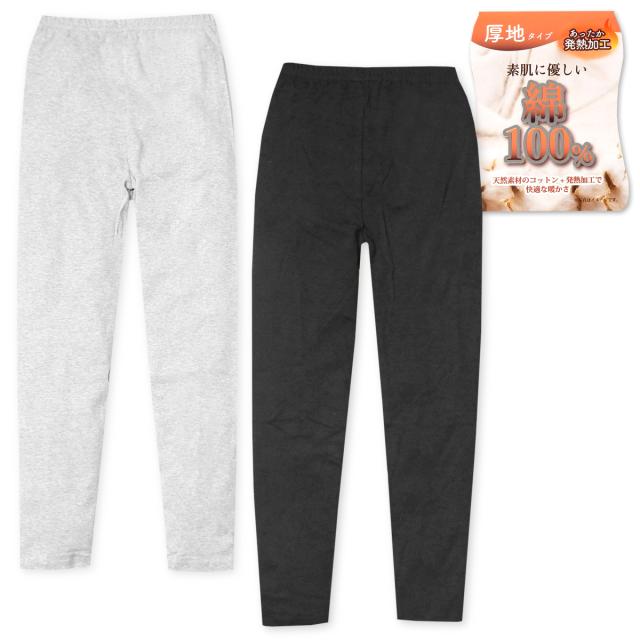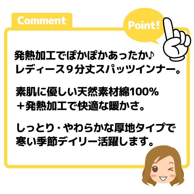 【送料無料】婦人 レディース 発熱加工 9分丈 ボトム インナー スパッツ あったか素材 綿100% 厚地 天然素材 素肌に優しい 肌着 下着 M L LL yg-2630【メール便対応】