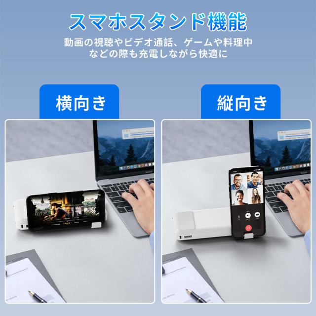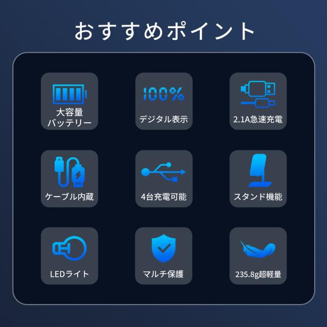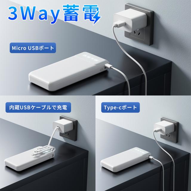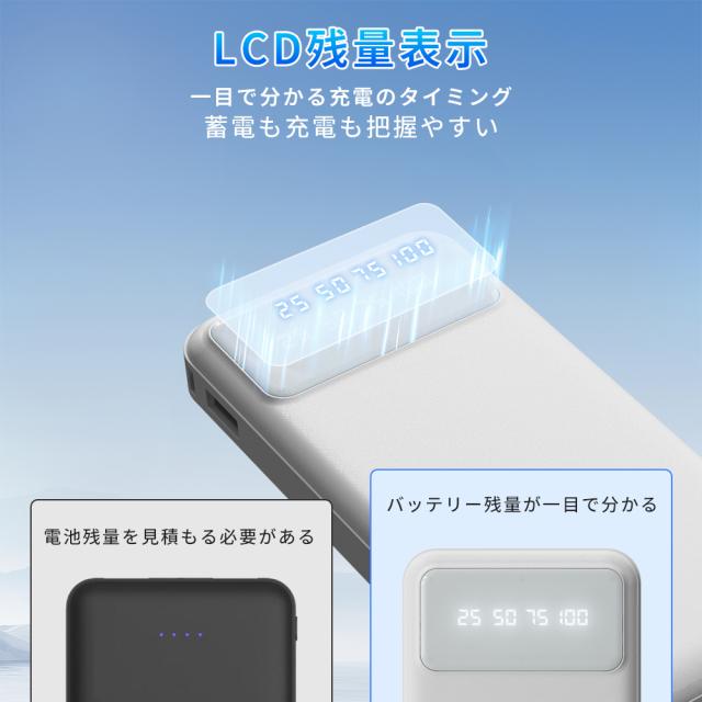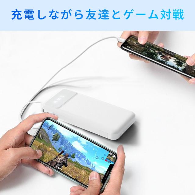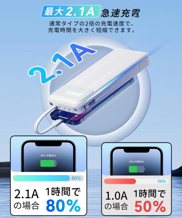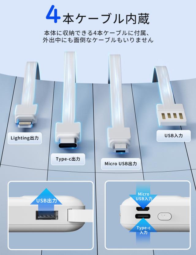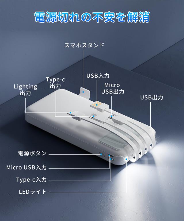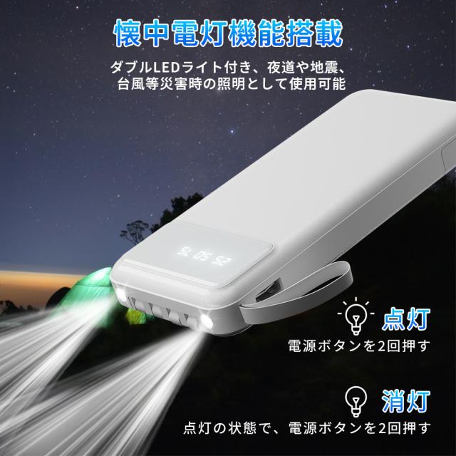 モバイルバッテリー 大容量 コンパクト Lightning Type-c コネクター内蔵 残量表示 2.1A 急速充電 軽量 小型 LED懐中電灯 携帯バッテリー スマホ充電器 iPhone/iPad/Android全機種対応 災害/停電/旅行/出張 PSE認証済