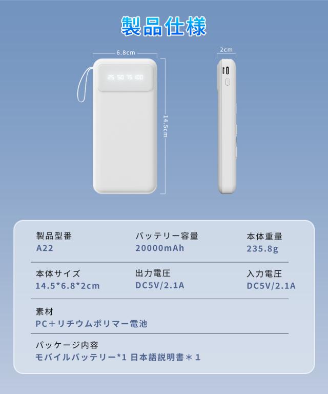 商品:20000mAhモバイルバッテリー