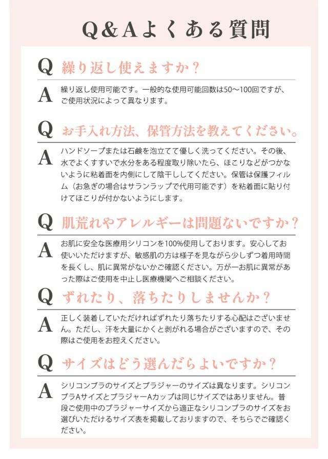 - はじめてのシリコンブラ購入でしたが、試着した感じはとても良かったです あとは、ドレス着用時に外出してみて、使い心地(着心地)や接着の持続なども試したいところですが… まずは着け慣れることかな?とおもいました