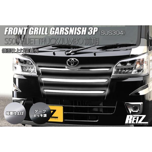 S500系 前期 ハイゼットトラック ハイゼットジャンボ フロントバンパーグリルガーニッシュ 3ピース - S500P S510P サンバートラック ピクシストラック