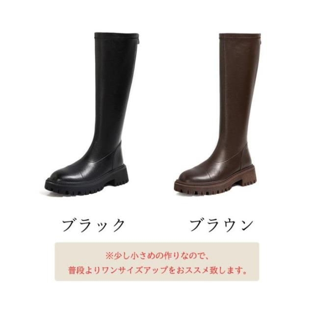 ブラックとブラウン、ベーシックなカラー展開の厚底ロング丈ブーツです。