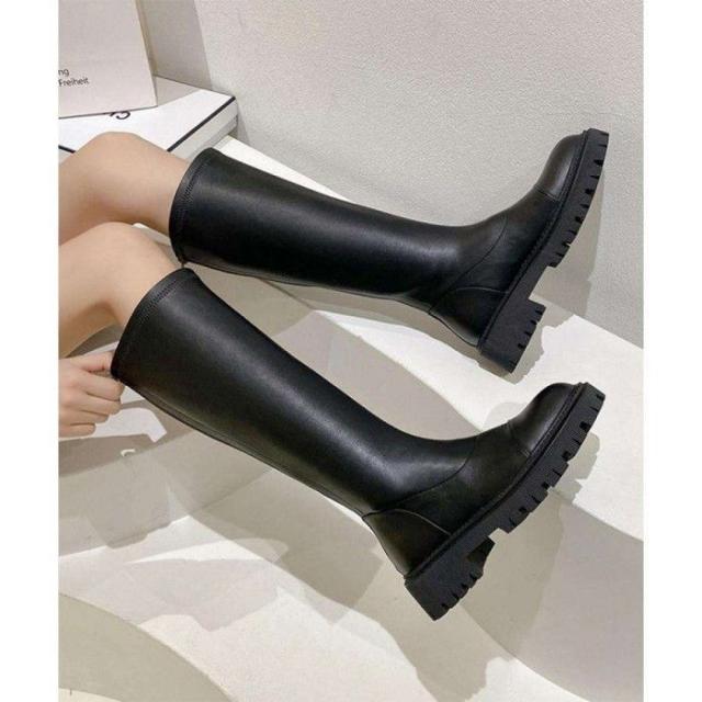 レディース 韓国ブーツ 膝下 ジョッキーブーツ バックジップ PUブーツ 太ヒール 靴 履きやすい 春秋冬 人気新作