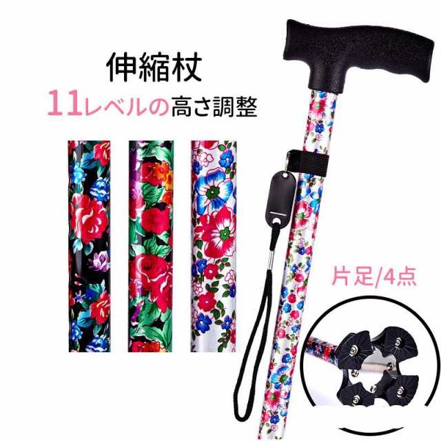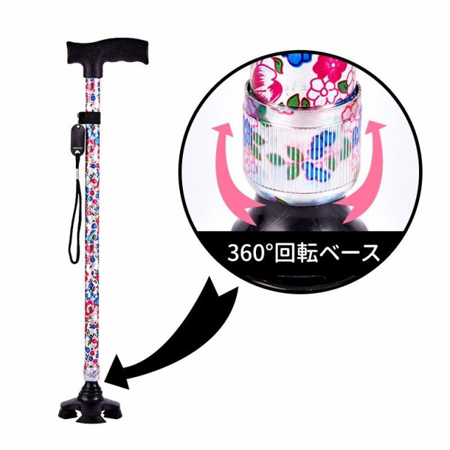 杖 花柄 おしゃれ 自立式 自立杖 つえ 介護 自立 軽量 伸縮 歩行補助 レディース 女性用 女性 敬老の日 母の日 誕生日 プレゼント ギフト ステッキ送料無料agesugi_ssp