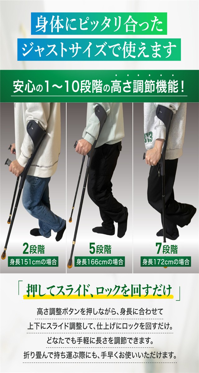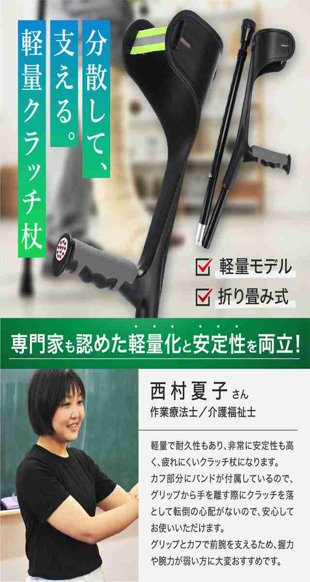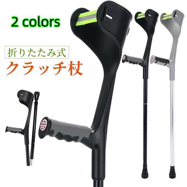 クラッチ杖 折りたたみ杖 松葉杖 クラッチ アルミ 軽量 介護 歩行 補助 練習 肘あて ゴム 付 伸縮 10段階調節可能(1点セット)グポール フィットグリップ