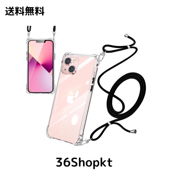 iPhone13 ケース ショルダー クリア 耐衝撃 ストラップ付き スマホケース アイフォン13 カバー 透明 薄型 軽量 TPU シリコン 紐付き 肩掛