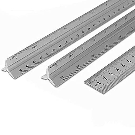 3本セット:【1/20 1/25 1/50 1/75 1/100 1/150】と【1/100 1/200 1/250 1/300 1/400 1/500】と30cm定規。必要な縮尺に合わせてご使用ください。
